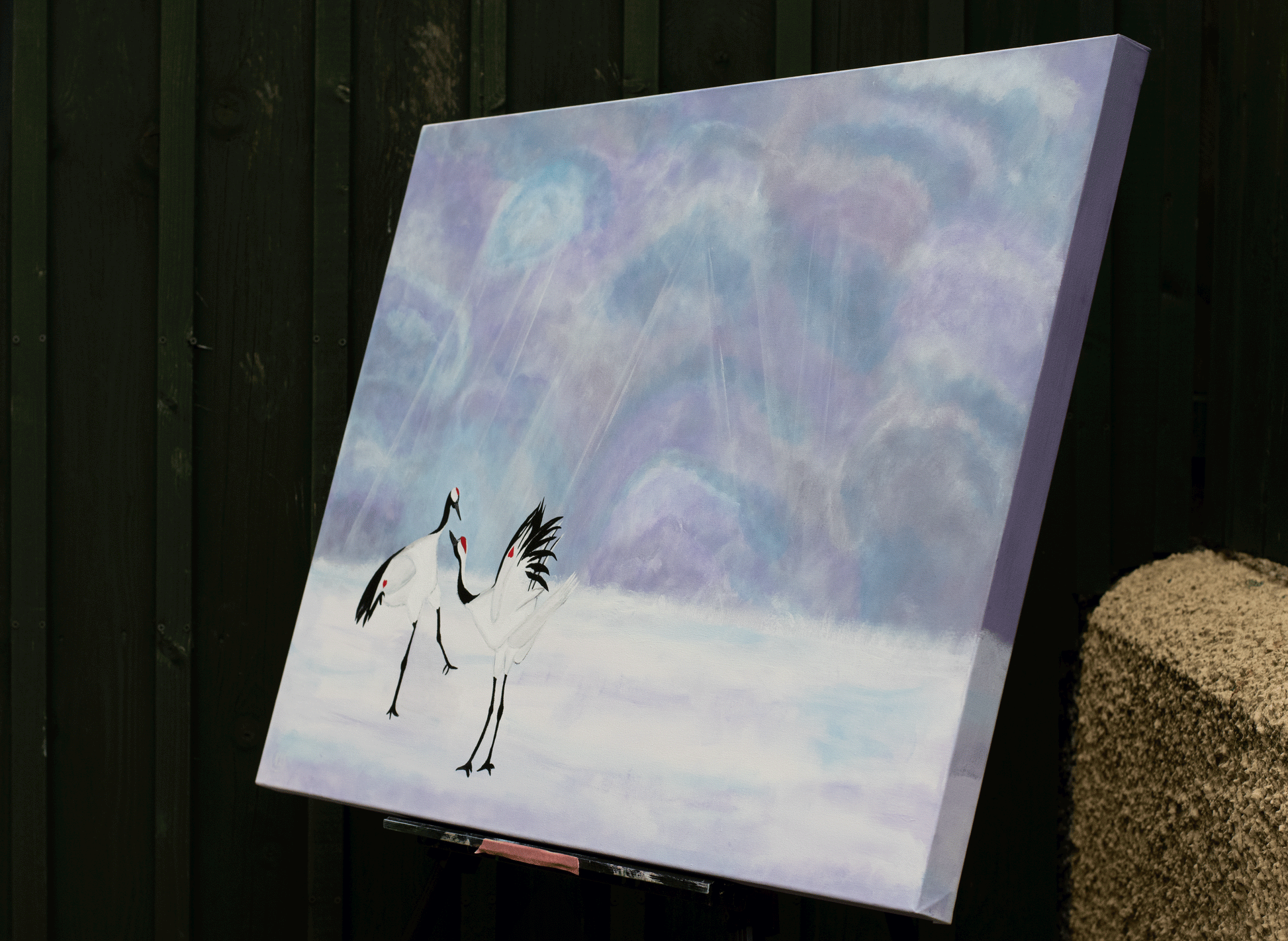 A Time to Love, A Time to Dance (size 100cm x 70cm) has been created from the inspiration of the Red Cranes which are the feature of this piece.